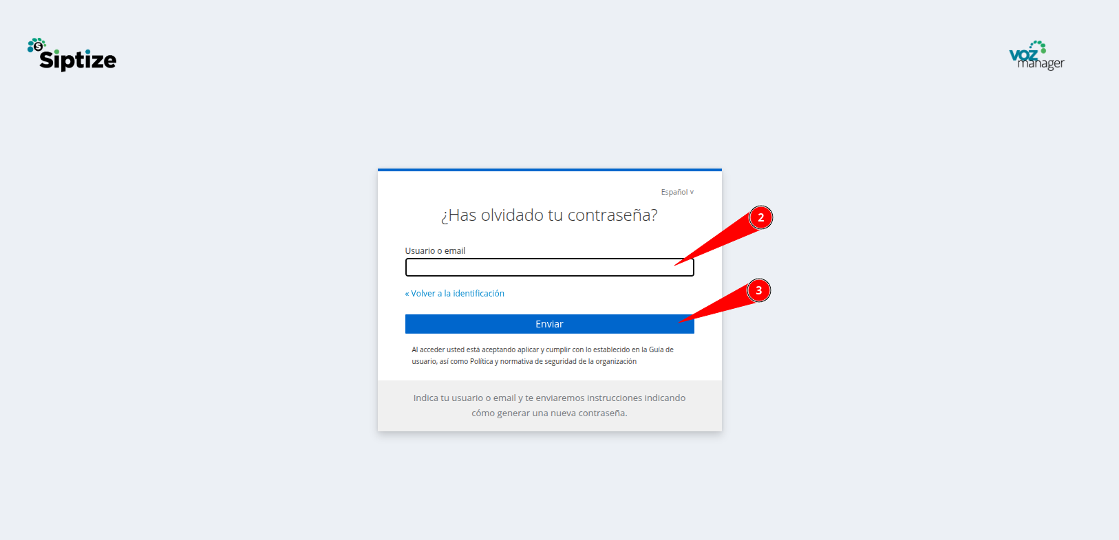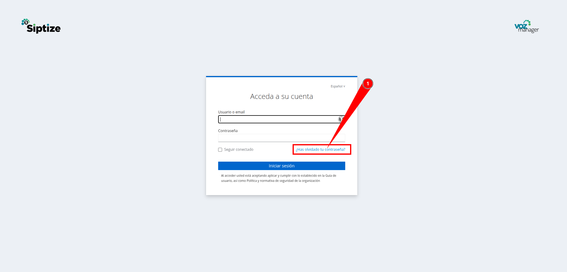 Si estás accediendo por primera vez a la plataforma de Tarificación, Gestión o tarificación. (ssl.siptize.com) y no conoces o has olvidado tu contraseña inicial, sigue estos sencillos pasos para restablecerla: